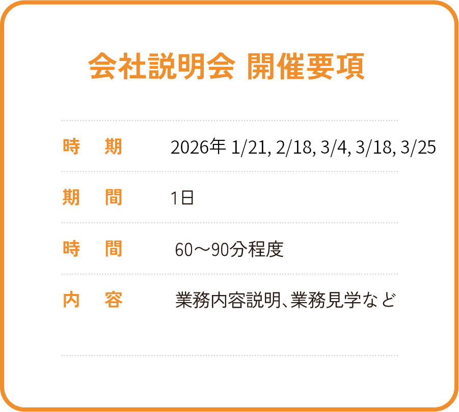 面接重視で選考いたします。説明会や選考の日程は決まり次第、エントリーフォームに記載された連絡先へお知らせいたします。興味のある方はまずはエントリーしてください。