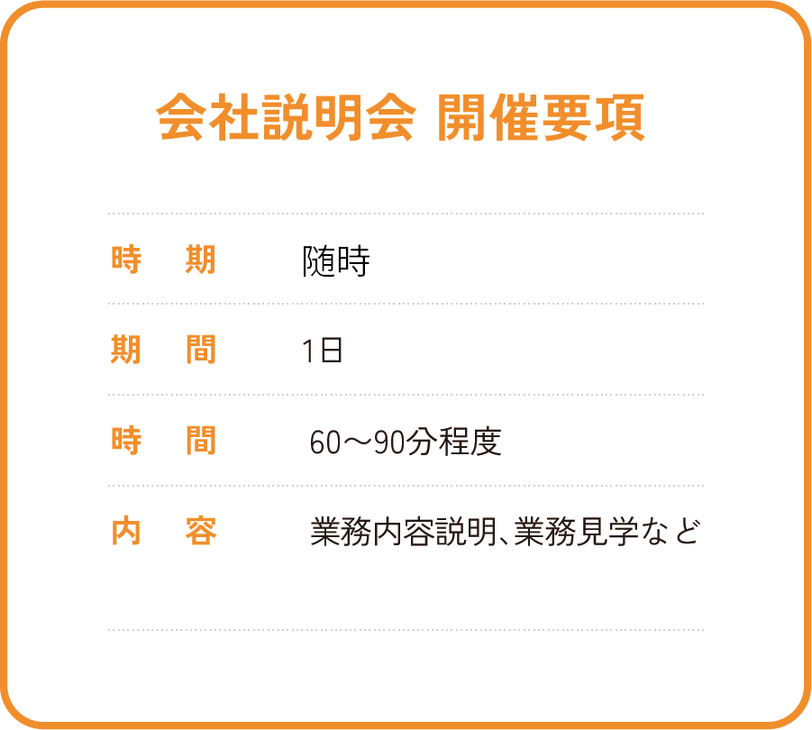 ※期間や時間についてはご要望がございましたら、ご相談ください。